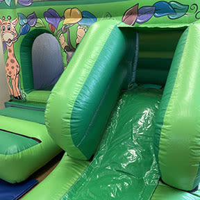 Note: The meshed sides on this castle combo make it lighter and easier to view children playing.