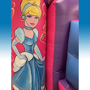 The Princess Front Slide Castle can be supplied with optional bluetooth speaker and lights. See 'Princess Disco Front Slide Castle'