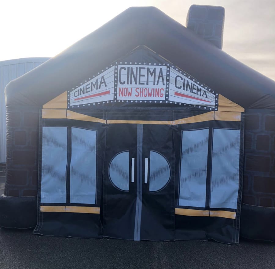 The cinema has blackout blinds so movies /sporting events can be enjoyed at any time of the day. Package includes large inflatable cinema, bean beds & cushions, projector and speaker.